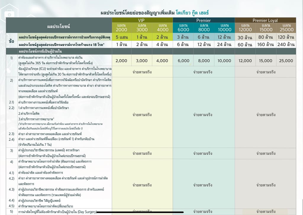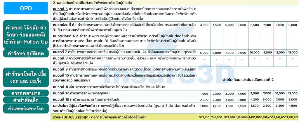 - แถมงบ ผู้ป่วยนอก OPD ค่าตรวจสุขภาพประจำปี และค่าฉีดวัคซีน 8000 บาท
